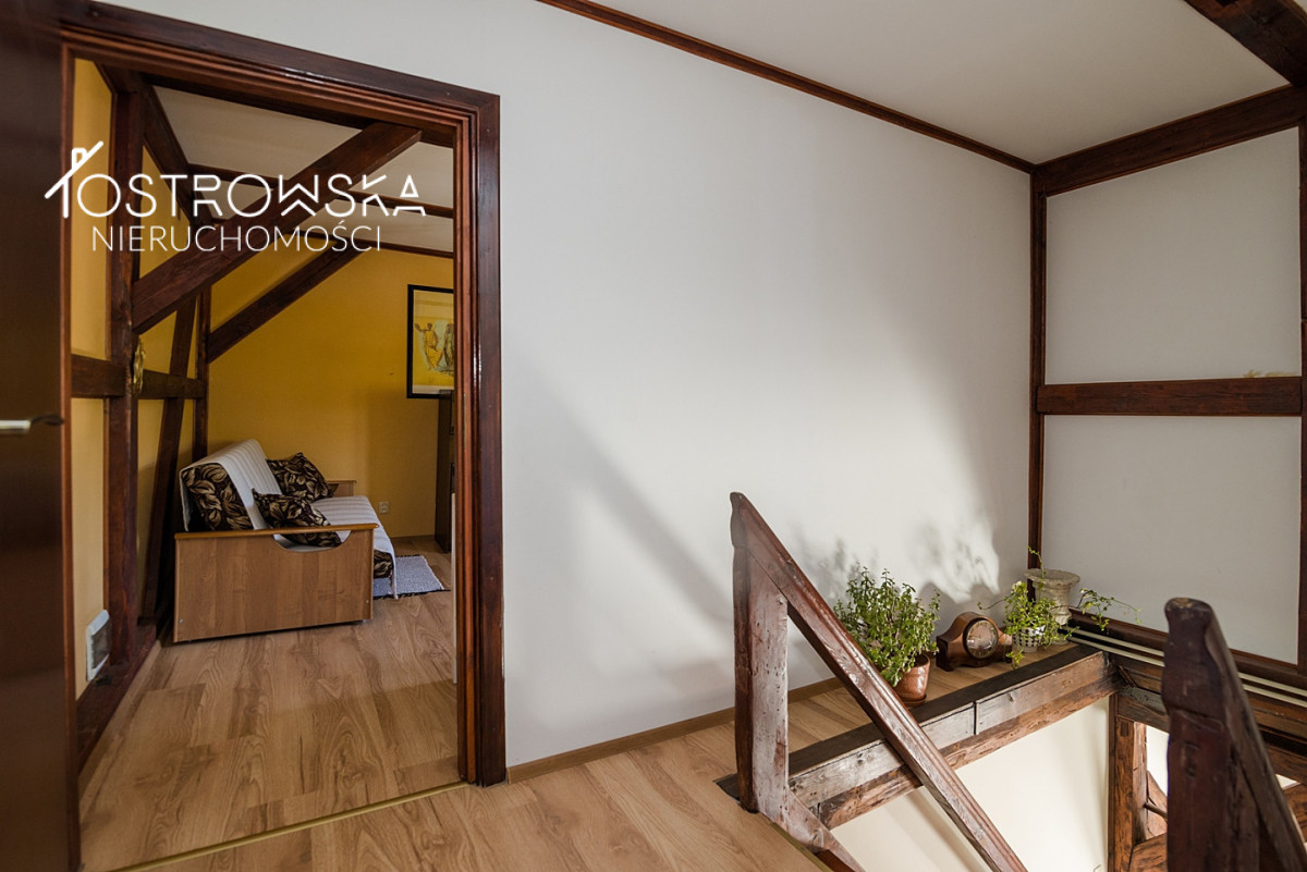 - część budynku po starym Młynie wodnym z oddzielnym wejściem z ulicy, posiada urządzony , klimatyczny, 2 - poziomowy apartament pod wynajem dla turystów, salon z aneksem kuchennym plus 2 sypialnie.