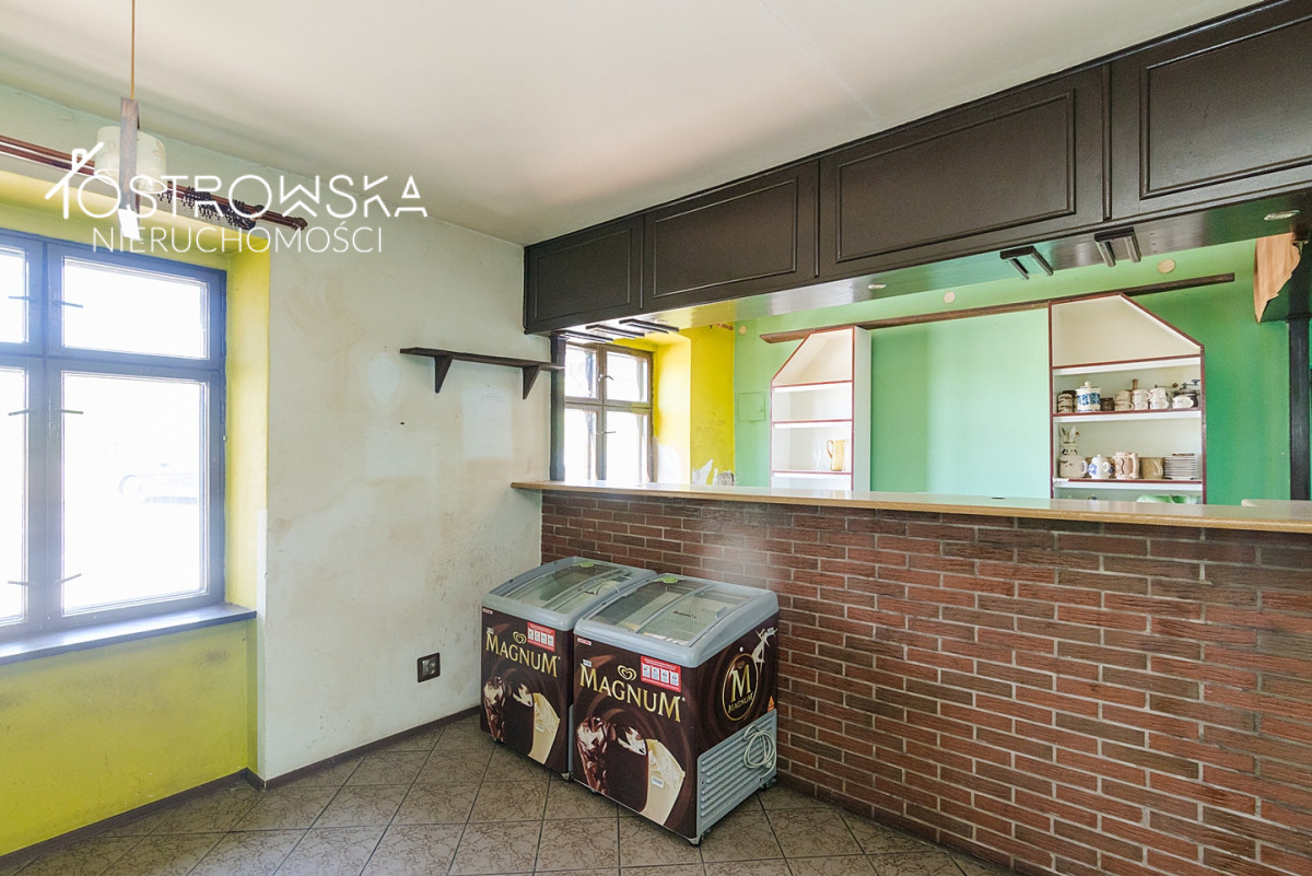 - część budynku po dawnej restauracji " Czarci Młyn" i pokojach gościnnych z oddzielnym wejściem z ulicy - do remontu i własnej aranżacji wnętrz. Na parterze pomieszczenia podzielone na salę restauracyjną i zaplecze kuchenne. Piętro - pokoje gościnne , kuchnia, łazienka. Dodatkowe pokoje na parterze. TARAS z widokiem na rzekę.