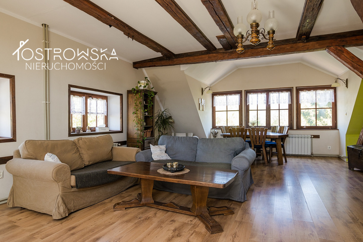 - część budynku po starym Młynie wodnym z oddzielnym wejściem z ulicy, posiada urządzony , klimatyczny, 2 - poziomowy apartament pod wynajem dla turystów, salon z aneksem kuchennym plus 2 sypialnie.