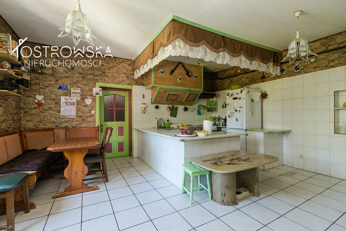 Budynek 4 kondygnacyjny o pow. całkowitej ok 1000 m2 posiada bezpośredni dostęp do drogi publicznej nr 58. Dach nad częścią mieszkalną z dachówki ceramicznej ( wymiana3 lata ), wymienione wszystkie okna, wnętrze do remontu i adaptacji w zależności od dalszego przeznaczenia . Fundament zbudowany z głazów, ściany z cegły palonej o grubości ok 35 cm.